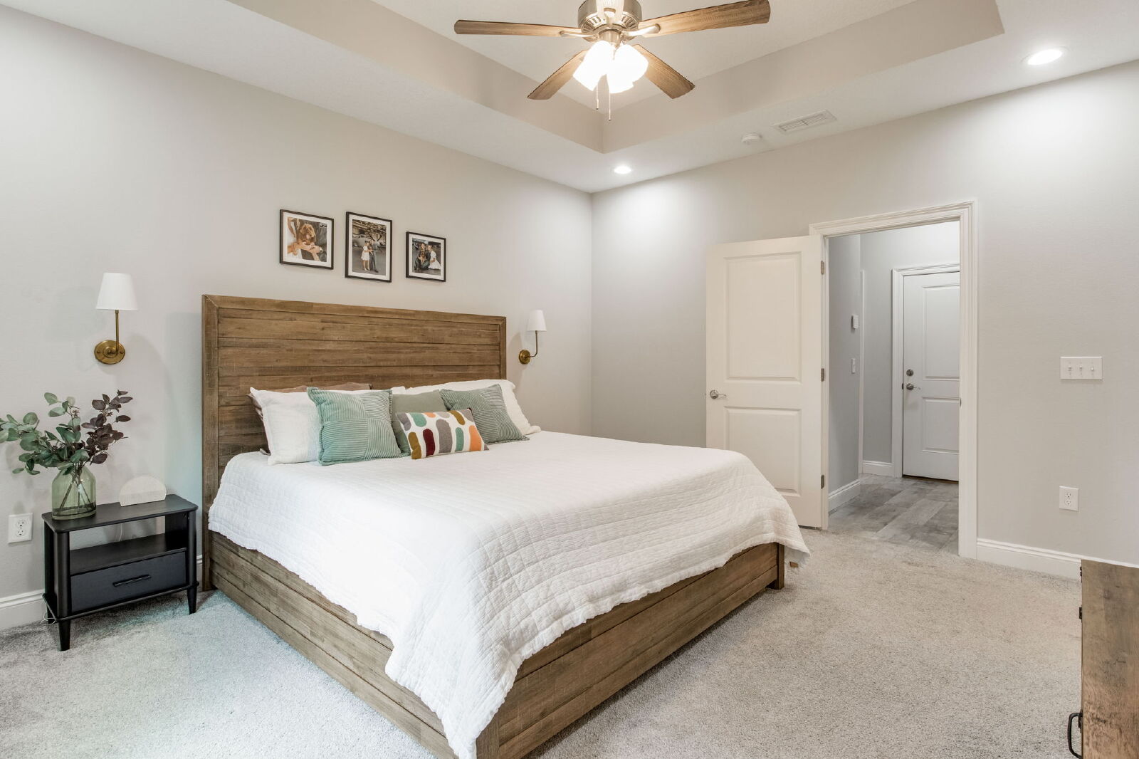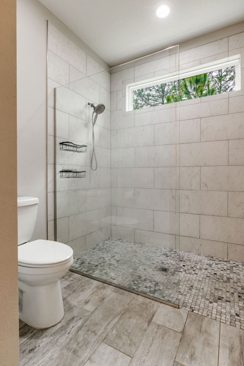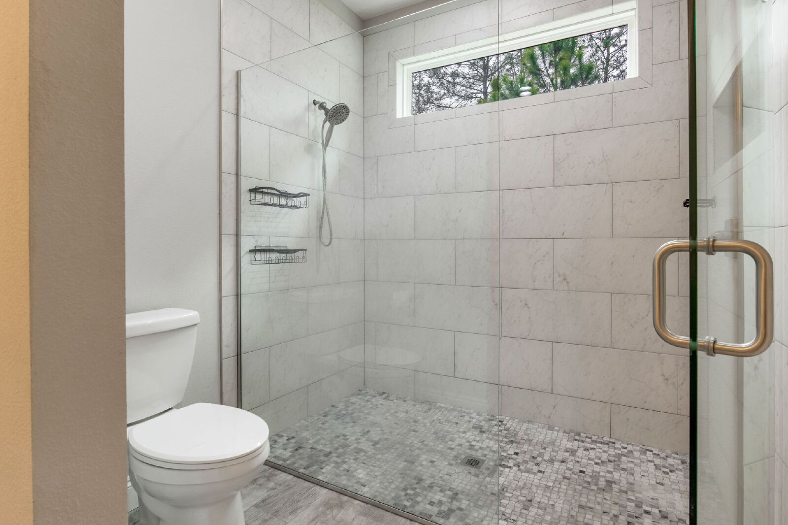 The primary suite provides a private retreat with a spacious walk-in closet and a custom tiled shower that adds a touch of luxury. Three additional bedrooms offer flexibility for guests, family, or a home office.