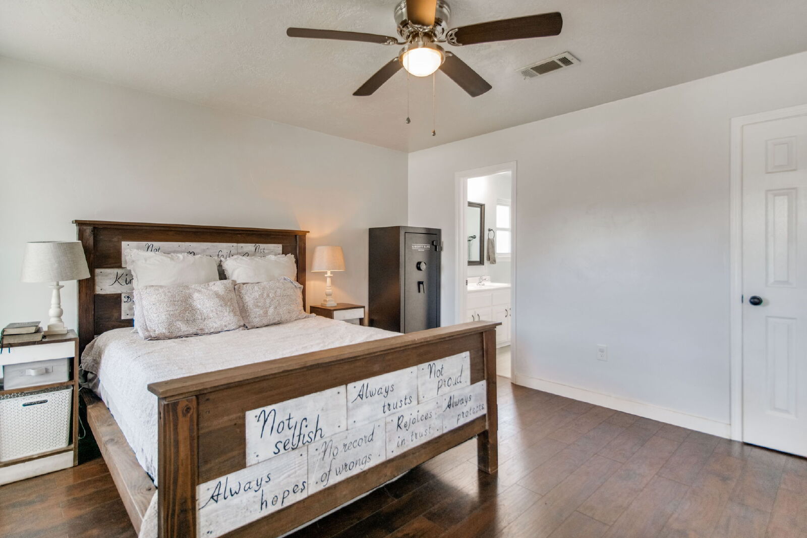 Inside, you’ll find a functional layout with a generously sized primary suite featuring built-in shelving in the closet for added organization. The en-suite bathroom includes double vanities, offering both convenience and comfort.