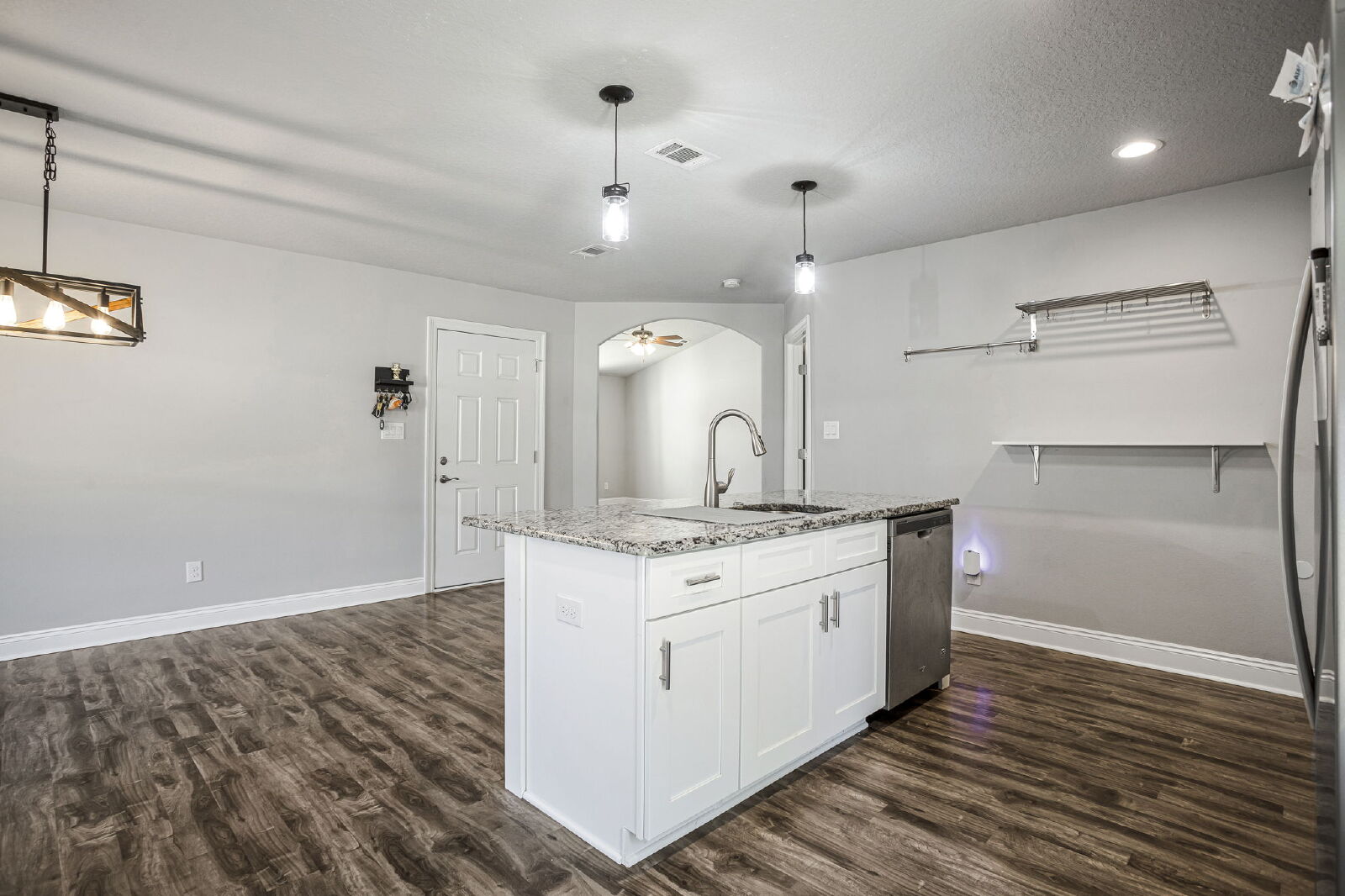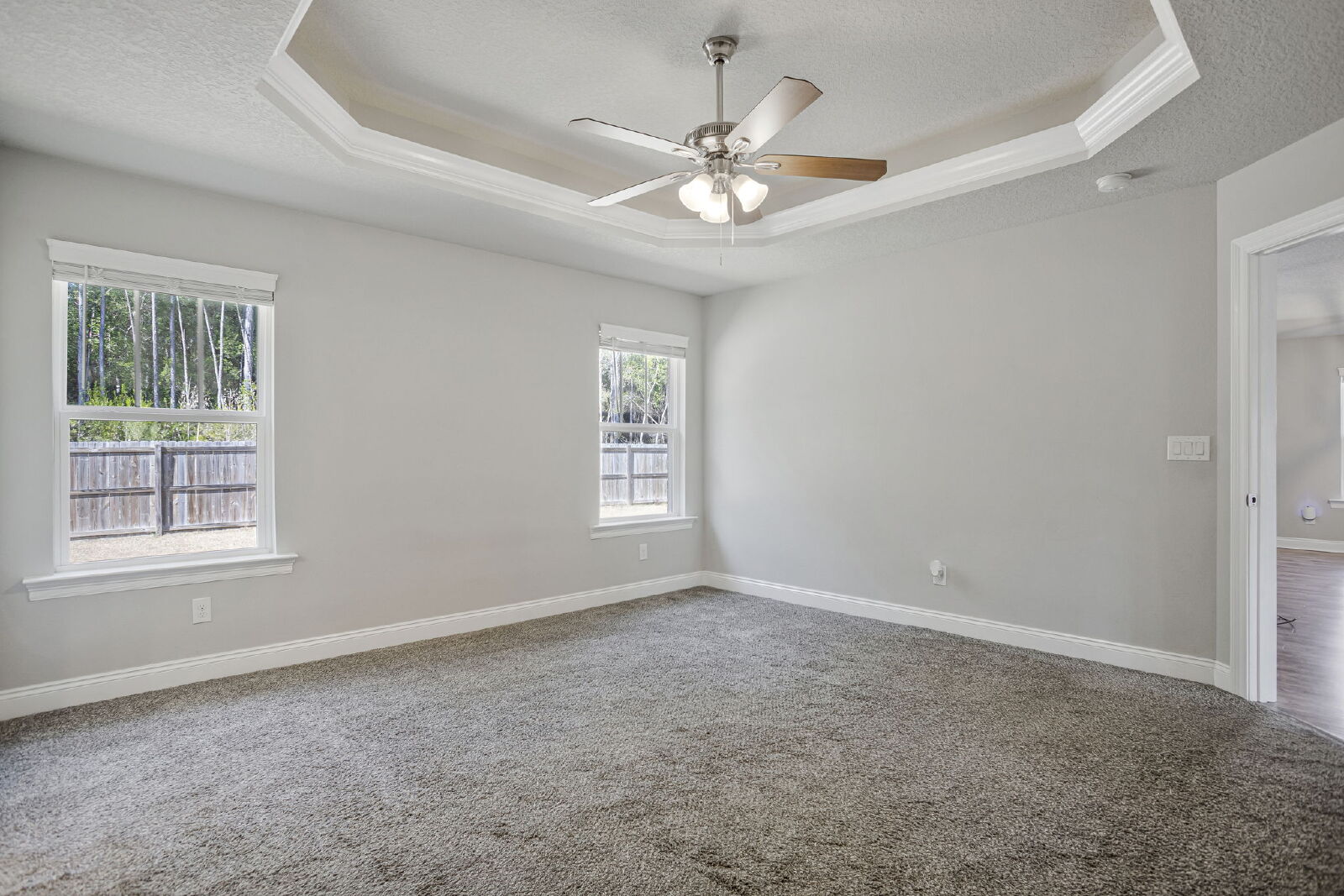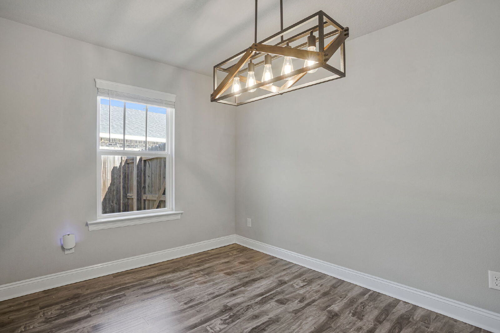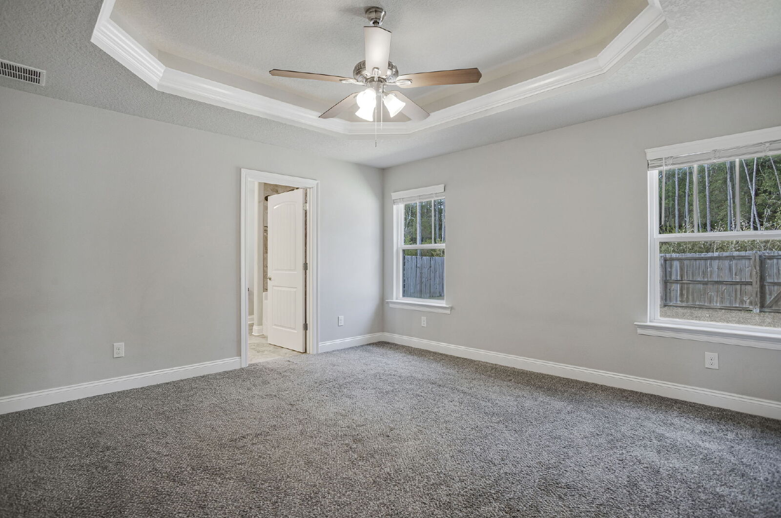 Welcome home! This like-new rental offers a smart split floor plan, vaulted ceilings, and durable gray luxury vinyl plank flooring that’s both scratch and water resistant, perfect for everyday living. Brushed nickel fixtures and hardware throughout give the home a clean, modern feel.The kitchen really shines with white shaker cabinets (soft-close doors and drawers), granite countertops, undermount sinks, brushed nickel faucet, and a full stainless steel appliance package including stove, microwave, and dishwasher.The primary suite is spacious and comfortable with a trey ceiling and plush carpet. The ensuite bathroom features a double vanity with granite countertops, undermount sinks, tiled flooring, a garden tub, tiled surround shower, walk-in closet, and matching brushed nickel finishes.Washer and dryer are included for your convenience. Step outside to enjoy the large fenced yard, ideal for relaxing, entertaining, or letting your dog roam. Bonus, No HOA.