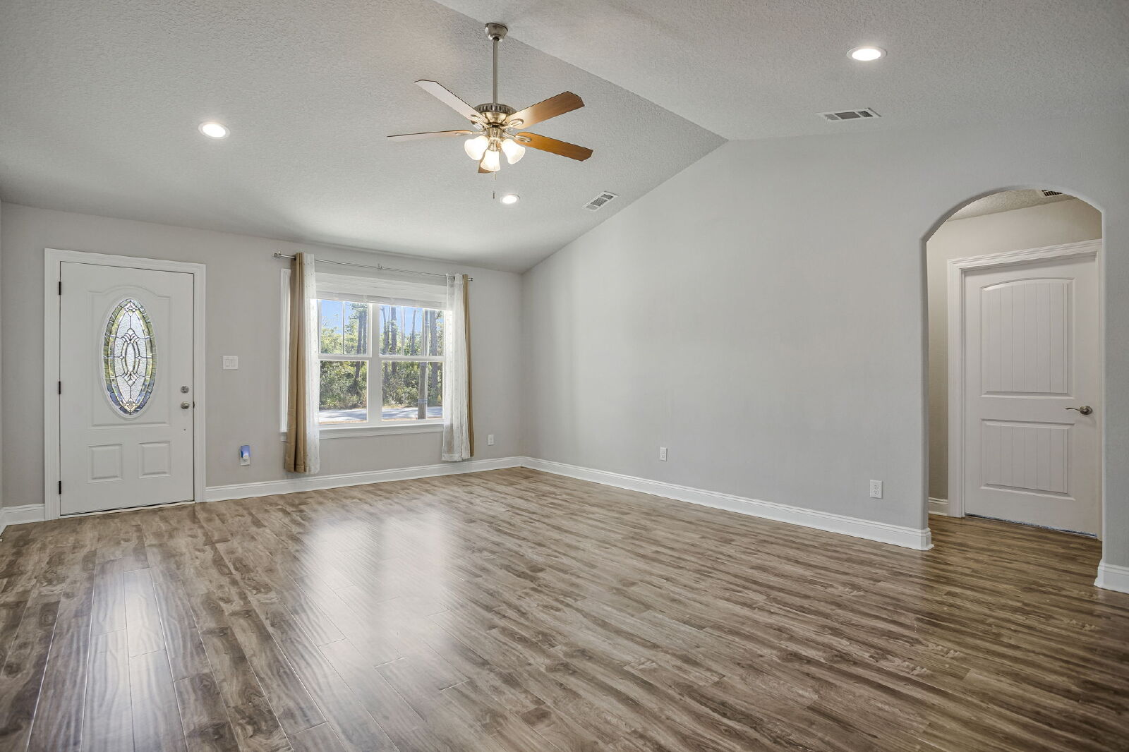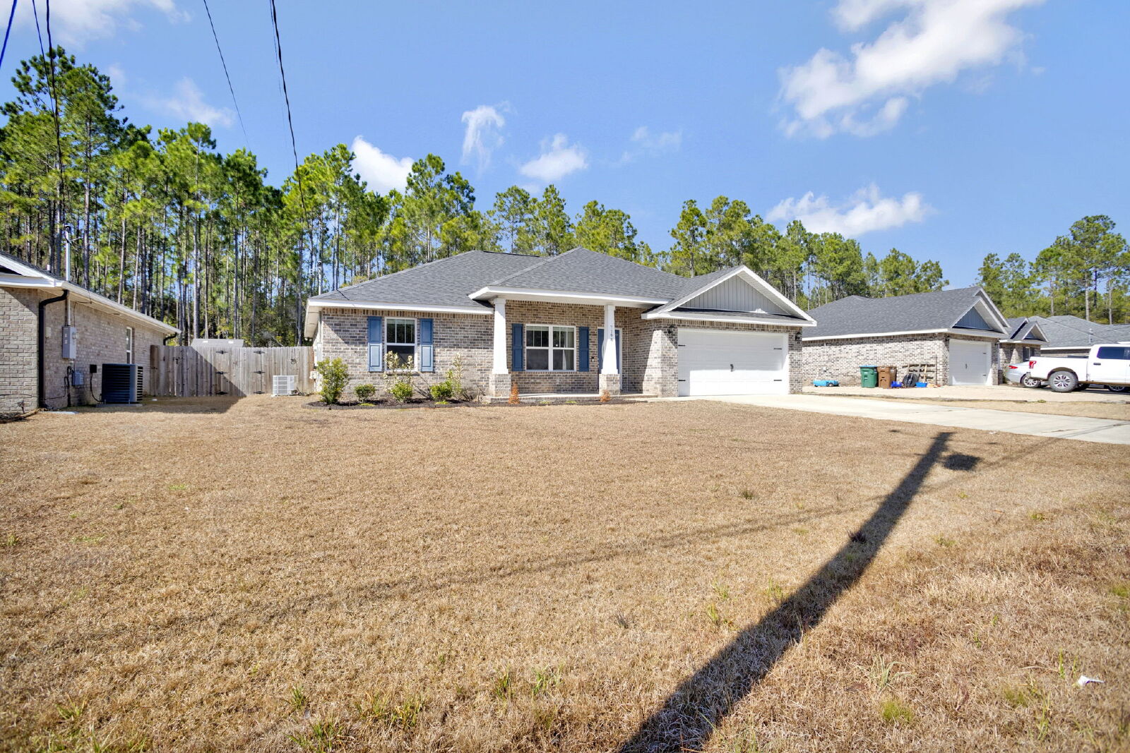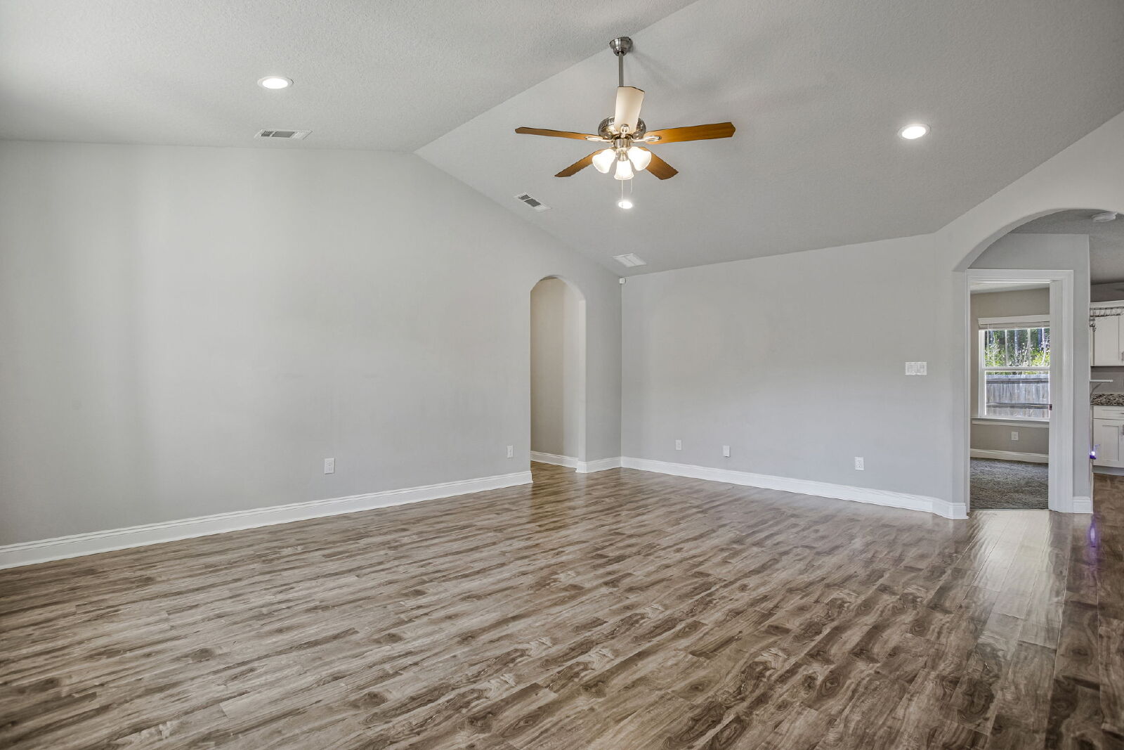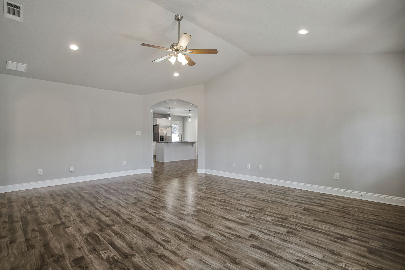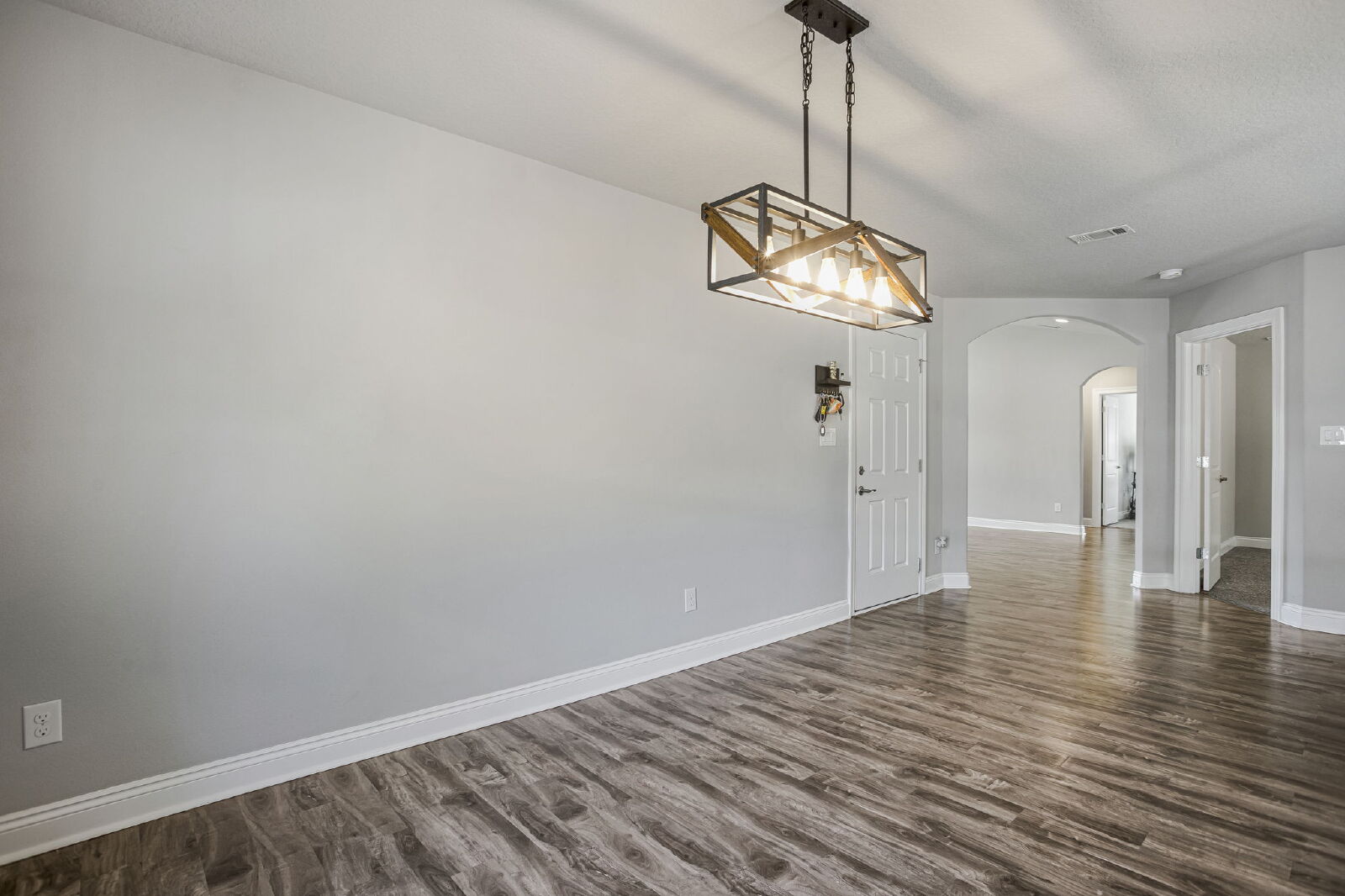 Welcome home! This like-new rental offers a smart split floor plan, vaulted ceilings, and durable gray luxury vinyl plank flooring that’s both scratch and water resistant, perfect for everyday living. Brushed nickel fixtures and hardware throughout give the home a clean, modern feel.The kitchen really shines with white shaker cabinets (soft-close doors and drawers), granite countertops, undermount sinks, brushed nickel faucet, and a full stainless steel appliance package including stove, microwave, and dishwasher.The primary suite is spacious and comfortable with a trey ceiling and plush carpet. The ensuite bathroom features a double vanity with granite countertops, undermount sinks, tiled flooring, a garden tub, tiled surround shower, walk-in closet, and matching brushed nickel finishes.Washer and dryer are included for your convenience. Step outside to enjoy the large fenced yard, ideal for relaxing, entertaining, or letting your dog roam. Bonus, No HOA.